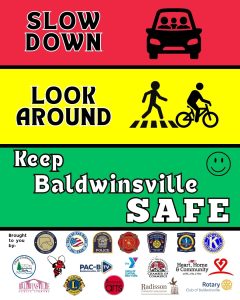 Baldwinsville citizens and community partners created a safety awareness campaign to remind anyone traveling in Baldwinsville to be mindful of their actions, to obey all traffic guidelines, and to keep everyone’s safety in mind.
